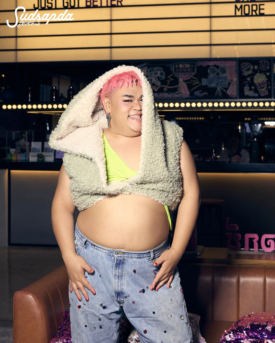 คืออย่างนี้ ในเรื่องปลายฝันออกจากวงการไปมีแฟน เธอก็ปล่อยเนื้อปล่อยตัวตลอด 7 ปี มันก็จะมีความเจ้าเนื้อ แต่พอจะกลับเข้าวงการ เฮ้ย! เห็นเด็กรุ่นใหม่เราดูอ้วนไปเลย ในเรื่องจะเห็นปลายฝันทั้งพาร์ตที่อ้วนและผอม เราต้องเพิ่มน้ำหนัก 10 กิโลกรัมภายใน 1 เดือน พอถ่ายไปครึ่งเรื่อง จะหยุดถ่ายไปเดือนหนึ่ง เพื่อลดน้ำหนักลง เพื่อถ่ายต่ออีกครึ่งเรื่อง จะบอกว่าตอนเพิ่มน้ำหนักขึ้นเครียดกว่า เพราะมีเรื่องต้องเตรียมไปพร้อมกันเยอะมาก ทั้งร้อง ทั้งเต้น ทั้งบท แอ็กติ้งต่างๆ ทำทุกอย่างพร้อมกันภายในหนึ่งเดือน ต้องมีนักโภชนาการประกบตลอดเรื่องการกินและมาช่วยนวดน้ำเหลือง แต่ตอนกินไม่มีใครช่วย เรากินเอง
