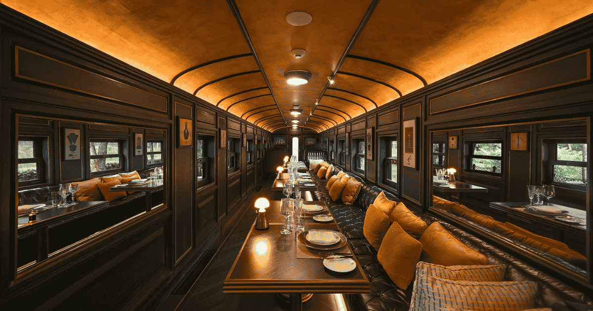 ซิกเนเจอร์ของที่นี่คือการพาคุณย้อนกลับไปยุคทองของการเดินทางด้วยรถไฟ ผ่านตู้รถไฟอัพไซเคิลสุดเก๋ ดีไซน์โดย Bill Bensley นักออกแบบระดับโลก ทำให้ทุกจานเหมือนเป็น “เรื่องเล่า” ที่ถูกเสิร์ฟออกมาอย่างประณีต