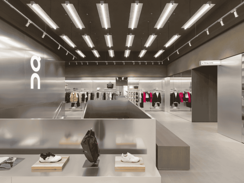 หนึ่งในไฮไลต์คือ Magic Wall แบบอินเตอร์แอคทีฟ ที่เชิญชวนให้ลูกค้าเข้ามาทำความรู้จักโลกของ On ได้อย่างต่อเนื่องและไร้รอยต่อ เมื่อเปิดลิ้นชักที่ซ่อนอยู่ จะสามารถพบกับรองเท้าครบทุกไซซ์ของรุ่นล่าสุด ทำให้ทีม On advisors สามารถแนะนำขนาดที่เหมาะสมได้อย่างสะดวก นอกจากนี้ยังมีโซนสินค้าอื่น ๆ ไม่ว่าจะเป็นโต๊ะ Tennis “Roger” และโซน Kids ซึ่งช่วยให้ลูกค้าเข้าใจได้ชัดเจนขึ้นว่าแต่ละคู่ถูกออกแบบมาเพื่อมอบประสิทธิภาพที่แตกต่างกันอย่างไร