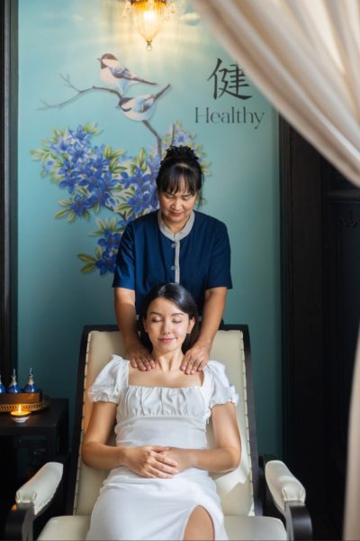 Pimdheva Spa สปาที่งดงามบน Sky Deck นำเสนอ Signature Program โปรแกรมการนวดต้นตำรับแบบไทยผสานศาสตร์การดูแลสุขภาพจากยุโรป รวมถึง Digital Detox ที่ช่วยผ่อนคลายการปลดปล่อยประจุไฟฟ้าลบและของเสียออกจากร่ายกาย โดยเฉพาะผู้ป่วยออฟฟิศซินโดรม
