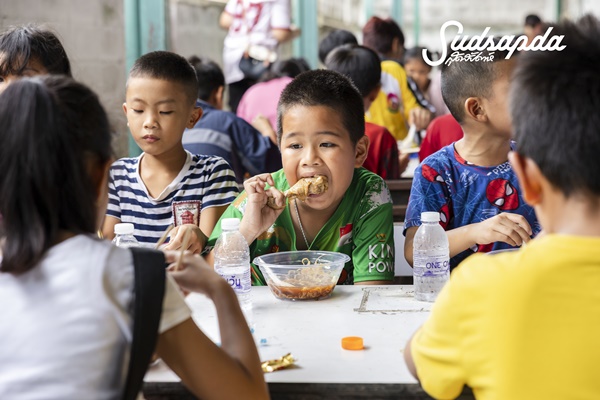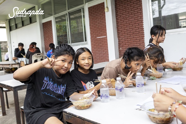 ทำกิจกรรมจนถึงเวลาใกล้เที่ยงแอบได้ยินเสียงท้องร้อง ครั้งนี้คนหล่อฯ เลี้ยงมื้อกลางวันเป็นก๋วยเตี๋ยวไก่ตุ๋นแสนอร่อย กับไอศกรีมเย็นๆ ปิดท้าย บอกเลยว่าอิ่มท้องอิ่มใจกันทั้งผู้ให้และผู้รับเลยแหละ